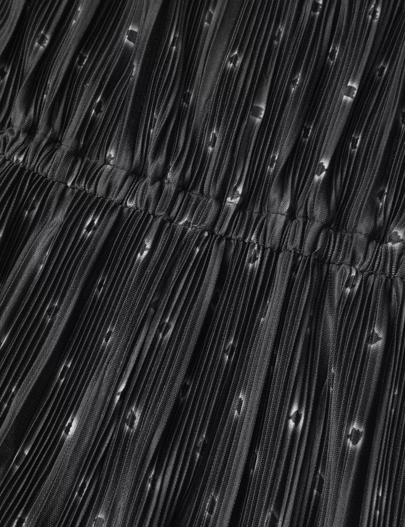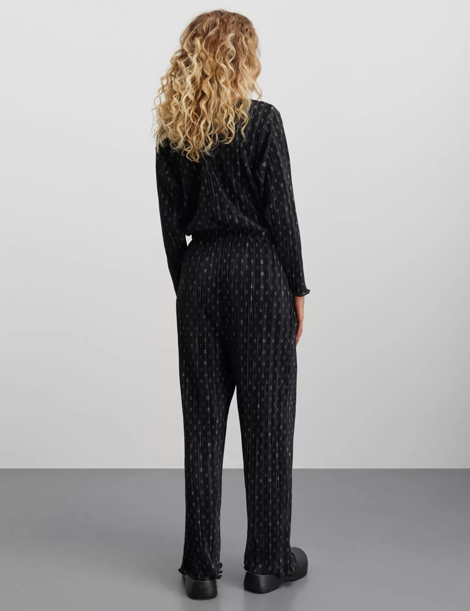 Buksedragten Luno Cava AOP af knitrende jersey med påsyede prikker falder afslappet. Den har markeret talje med elastik…