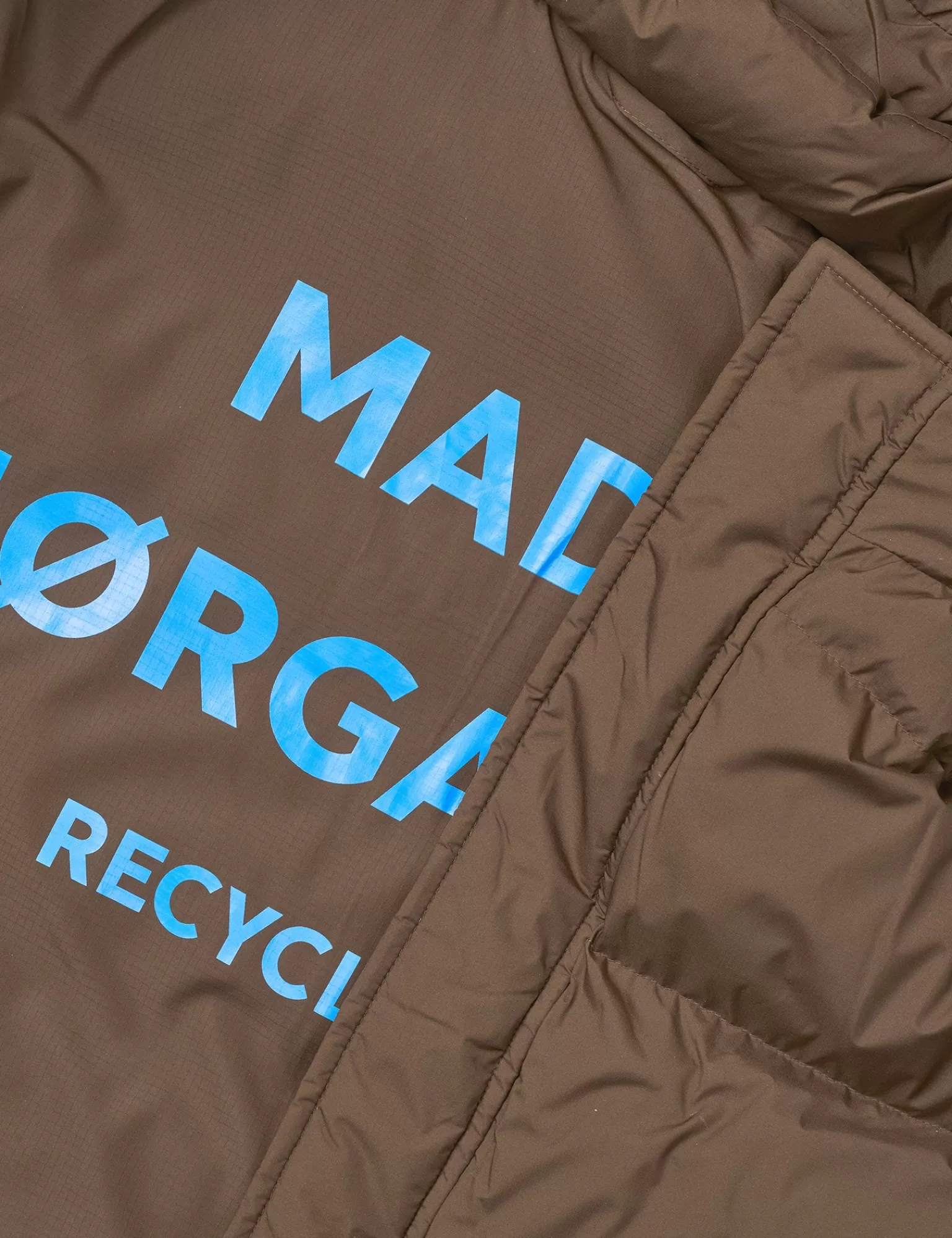 Recycle Jolene dynefrakke er læglang med et glat og vandafvisende ydre. Foret er superpuffy. og frakken har hætte med snører. høj hals. både lynlås og knapper. lommer i siderne og rib ved håndled.